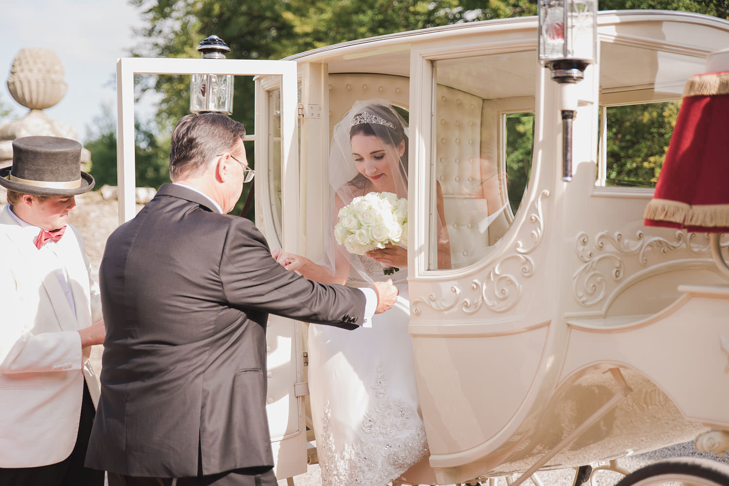 The ceremony was set up in the lovely walled garden area outside the castle. Michael arrived by Aston Martin and greeted the guests who were awaiting his arrival. Lindsey then made her way to the ceremony in a very elegant horse drawn carriage.