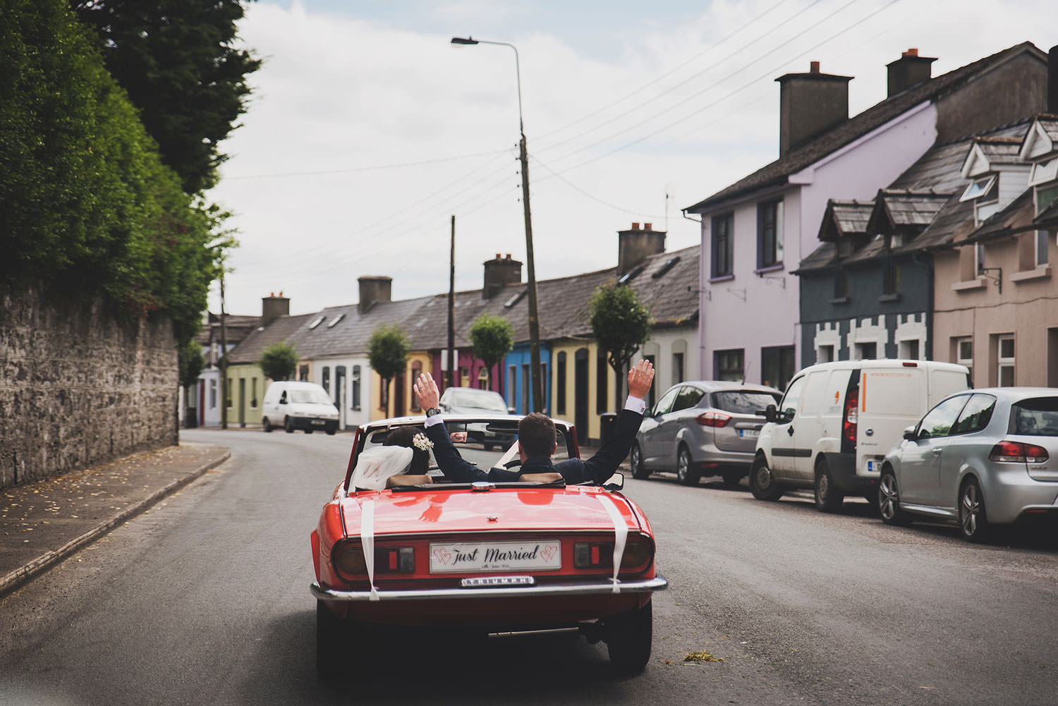 Their wedding day began in Millstreet, Co. Cork where they prepared in their respective homes. They had a gorgeous church ceremony in Millstreet before Noel drove them both in style in his customised car to Dunmore House Hotel.